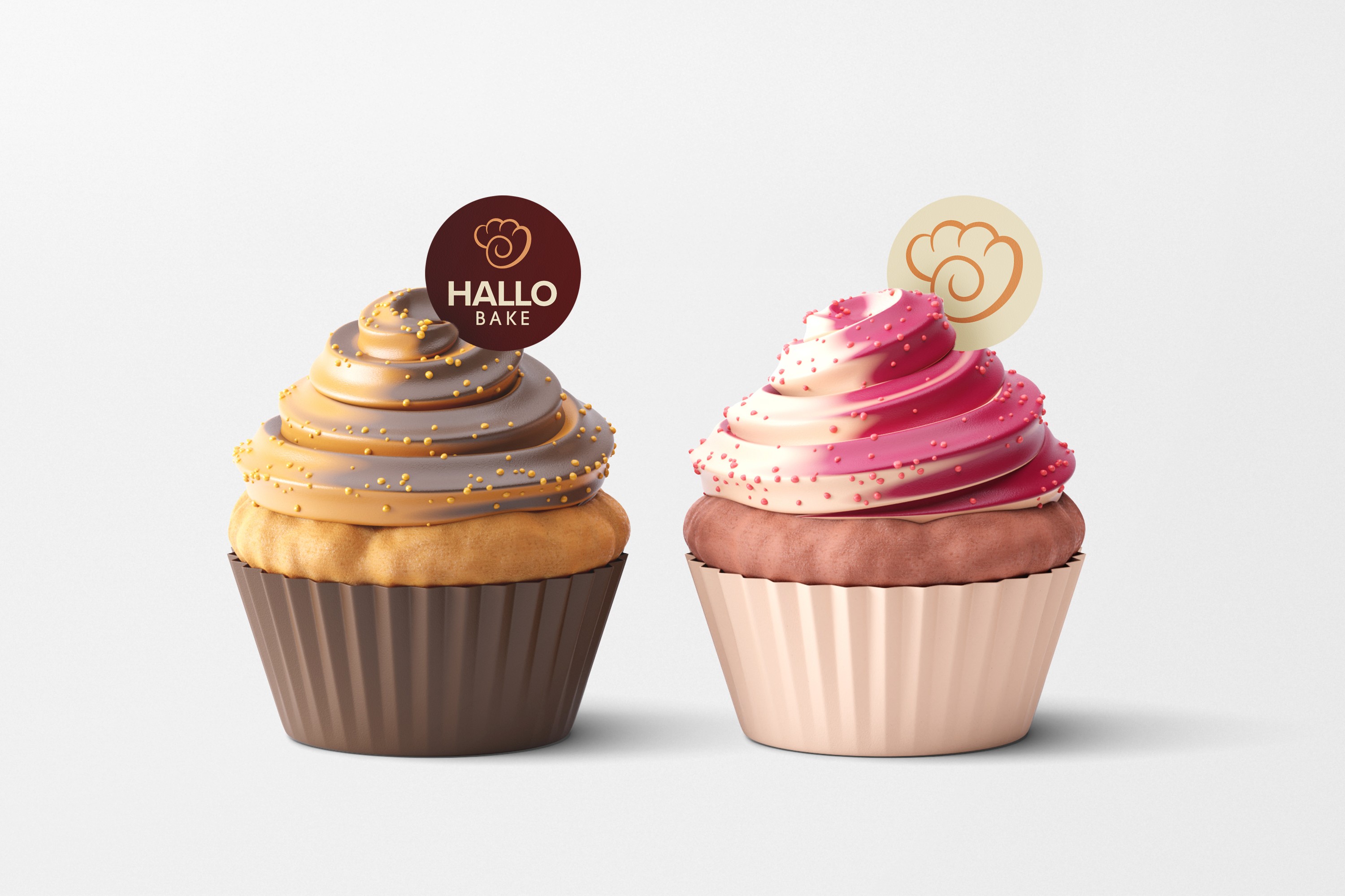 Hallo Bake, we crafted a warm and modern brand identity, including logo design, mockups, and essential branding items like packaging and aprons.